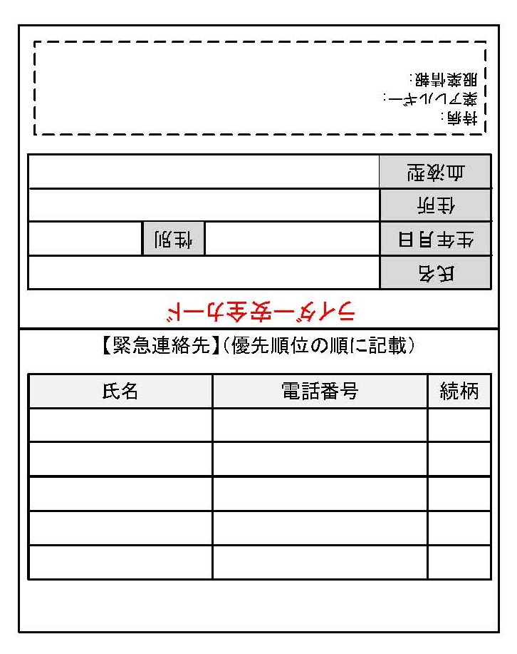フォーマットは何でも良いので、本人情報(氏名・住所・生年月日・性別・血液型)、緊急連絡先、医療情報の3つを記載できれば良し。